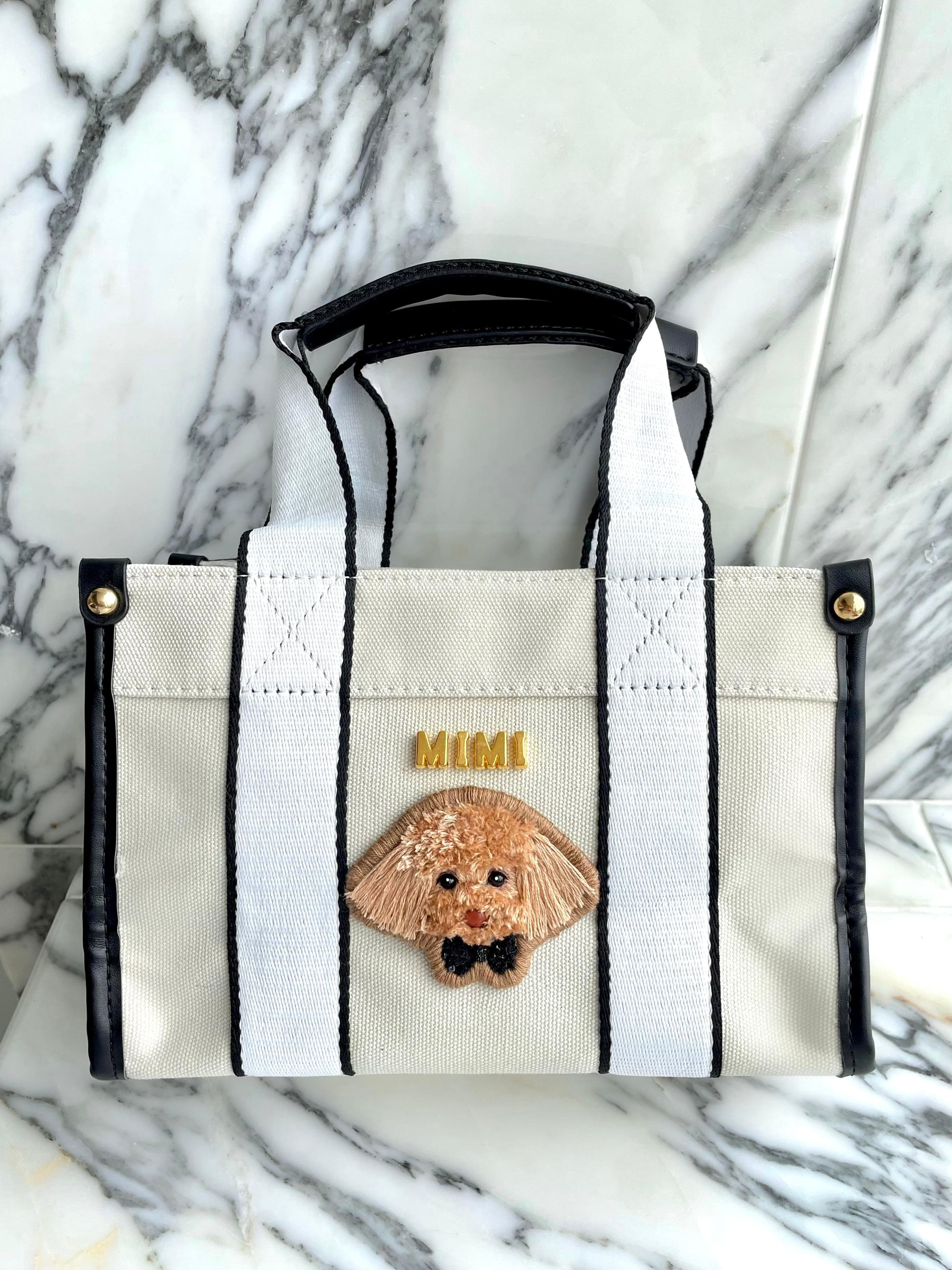 1頭♦︎Black♦︎Sサイズ♦︎刺繍デザイン【顔刺繍+名入れ+枠デザイン】オーダーメイドうちの子バッグ