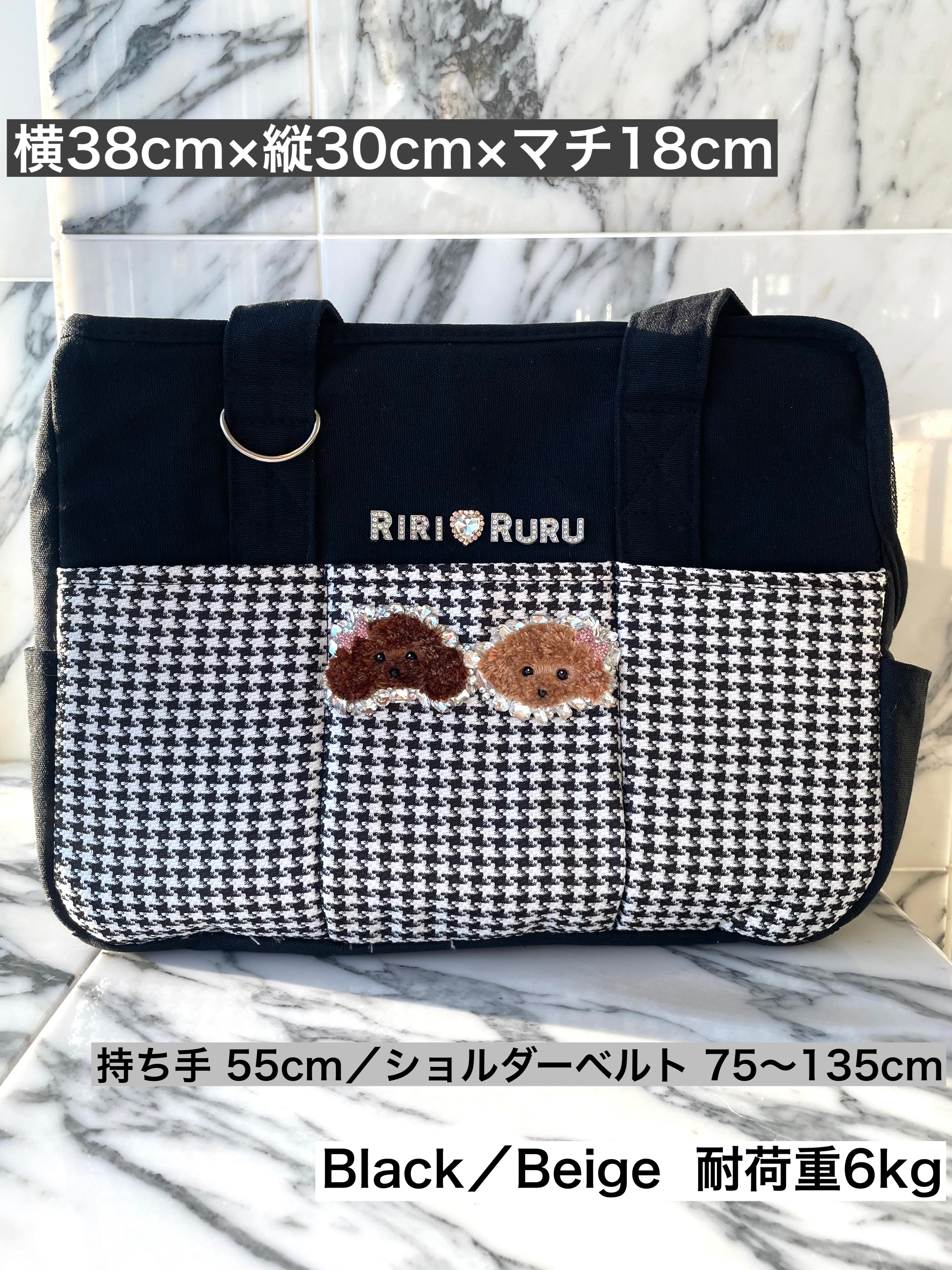 2頭♦︎ Black/Beige【顔刺繍+名入れ】オーダーメイドキャリーバッグ